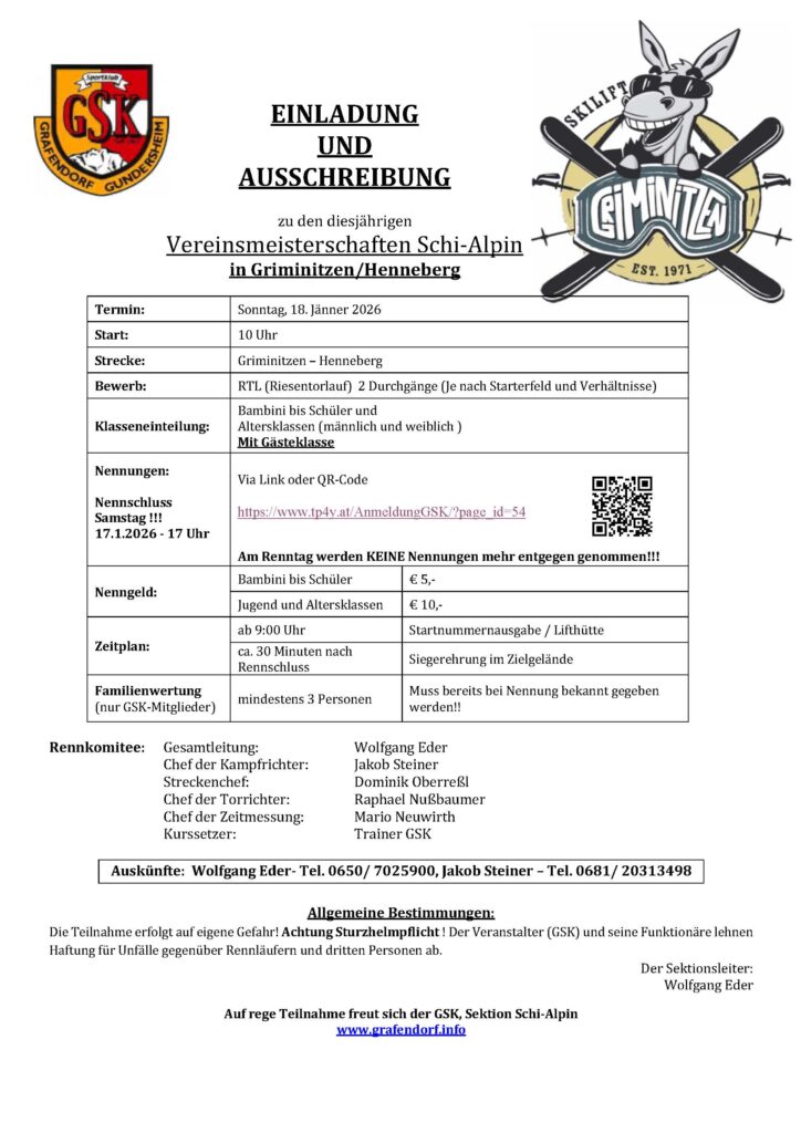 Skilift Griminitzen Start/Allgemein/Einladung und Ausschreibung zu den diesjährigen Vereinsschimeisterschaften Schi-Alpin in Griminitzen AllgemeinNewsSport Einladung und Ausschreibung zu den diesjährigen Vereinsschimeisterschaften Schi-Alpin in Griminitzen Redaktion Gundersheim11. Januar 2026Zuletzt aktualisiert: 11. Januar 2026 73 Weniger als einer Minute StichworteGrafendorf-Gundersheimer Sportklub Griminitzner Streif GSK Skifahren Redaktion Gundersheim11. Januar 2026Zuletzt aktualisiert: 11. Januar 2026 73 Weniger als einer Minute Facebook Twitter LinkedIn Tumblr Pinterest Reddit VKontakte WhatsApp Telegram Teilen via E-Mail