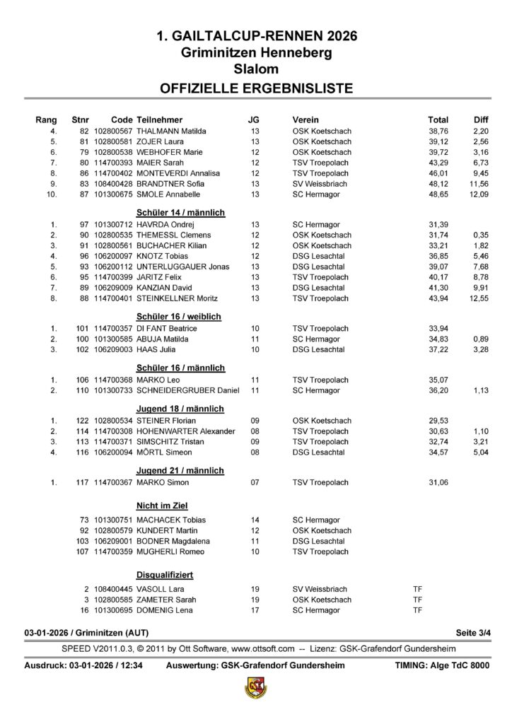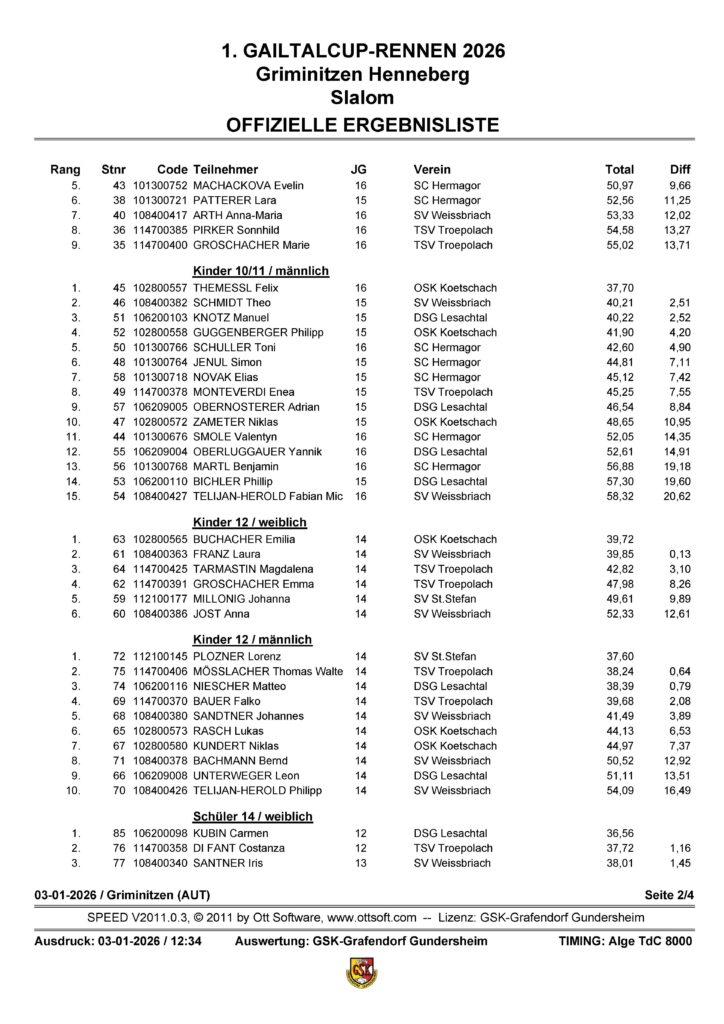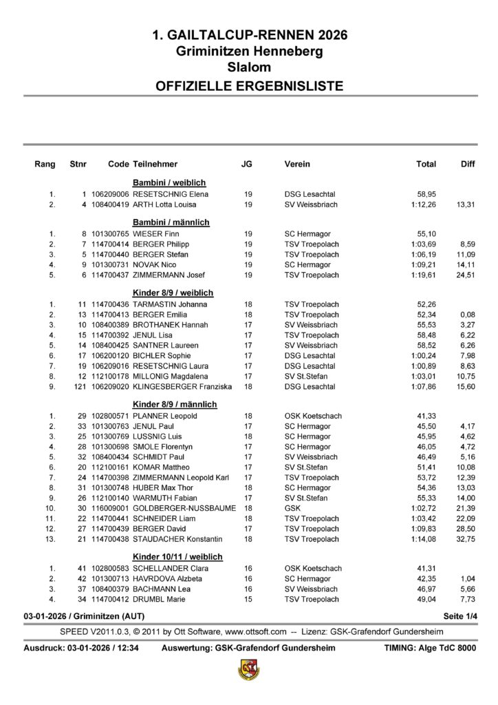 Am Samstag, dem 03. Jänner 2026, wurde das 1. Gailtalcuprennen auf der Griminitzner Streif ausgetragen. Viele Teilnehmer und Zuschauer versammelten sich, um diesem sportlichen Ereignis beizuwohnen und das spannende Rennen zu verfolgen.